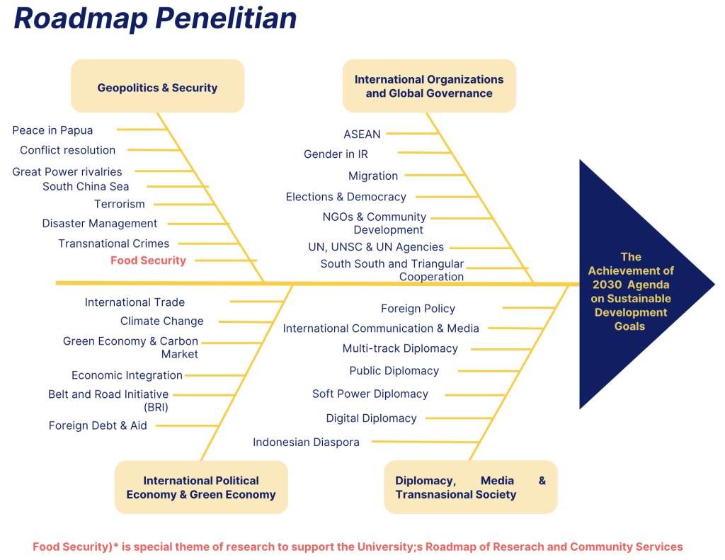PACIS is highly committed to support fully the implementation of the Road Map of Research, developed by Department of International Relations, Parahyangan Catholic University as follows: