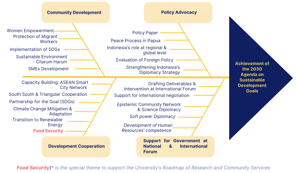 To contribute to the Achievement of 2030 Agenda on Sustainable Development Goals (SDGs) and the Increase of Indonesia’s Leading Role at the Regional and Global Levels