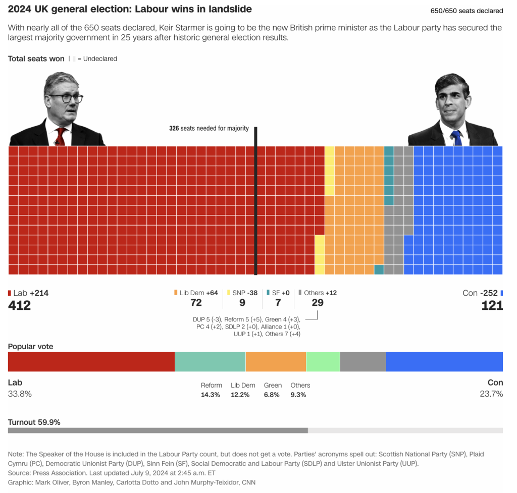 Ronald, Carlotta Dotto, Lauren Said-Moorhouse, Christian Edwards, Issy. “UK Election Results 2024 in Graphics.” CNN, July 4, 2024. https://edition.cnn.com/2024/07/04/uk/uk-election-results-tracker-map-2024-intl/index.html.