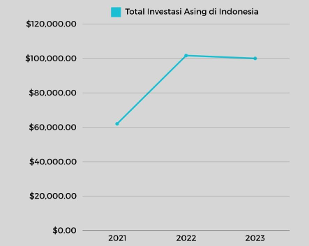 Menurut sumber data yang didapatkan dari Kementerian Investasi/BKPM yang dikutip oleh Kementerian Pembangunan Aparatur Negara dan Reformasi Birokrasi target investasi asing adalah Rp. 1.400 triliun yang tercapai dengan realisasi sebesar Rp. 1.418 triliun (Kementerian Pembangunan Aparatur Negara dan Reformasi Birokrasi, 2024). Kementerian Investasi/BKPM juga menargetkan untuk tahun 2020-2024 investasi asing yang dibutuhkan sebesar 35 triliun rupiah. Sepanjang triwulan III tahun 2024 BKPM juga mencatat Indonesia berhasil mencapai realisasi investasi sebesar Rp. 431,48 triliun yang berarti ada peningkatan 15,25% dibandingkan waktu yang sama di tahun 2023 (BKPM, 2024).